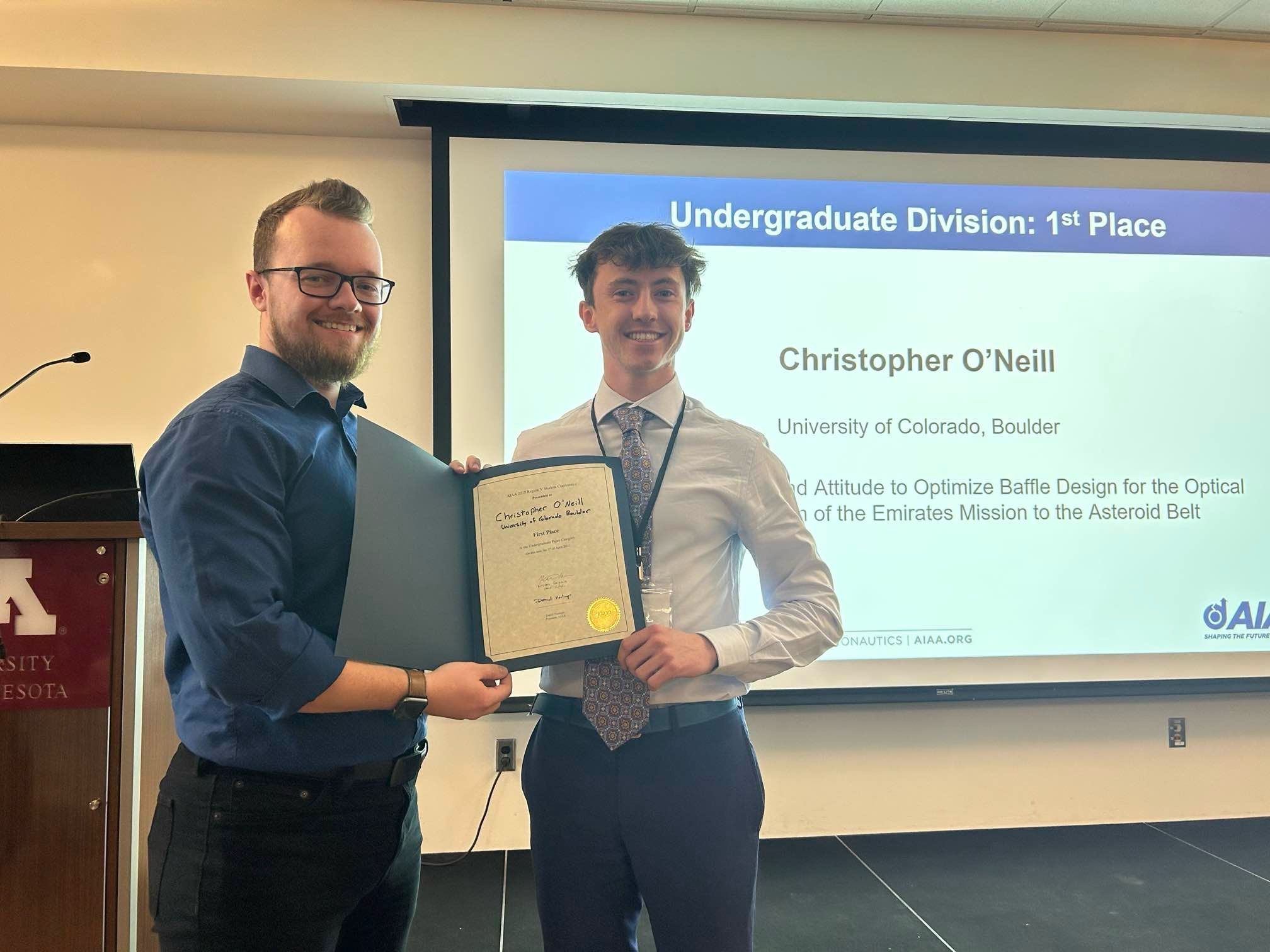 In April 2025, I presented my paper, “Modeling Trajectory and Attitude to Optimize Baffle Design for the Optical Navigation System of the Emirates Mission to the Asteroid Belt” at the AIAA Region V Student Conference.